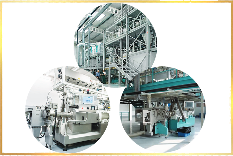 Our facility is equipped with Buhler's Twin Screw Extrusion Technology, a globally renowned name in the extrusion industry which delivers homogenization of essential nutrients, ensuring that each kernel contains a consistent amount of vital vitamins and minerals.